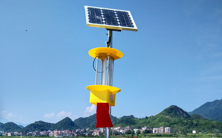 什么是太陽能頻振式殺蟲燈?太陽能頻振式殺蟲燈的效果怎么樣?云飛科技從事農(nóng)林病蟲害的遠(yuǎn)程監(jiān)控、防治器械的研發(fā)、生產(chǎn)的負(fù)責(zé)人介紹說:太陽能頻振式殺蟲燈是利用害蟲趨光性進(jìn)行誘殺的一種物理防治方法。該殺蟲燈是通過燈頂部的光電板,在白天時將太陽能轉(zhuǎn)化為電能,并儲存在底部的蓄電池里,到了晚上自動亮起來的太陽能燈,利用害蟲較強的趨光性、趨波性、趨色性的生理特性,將光的波長、波段、波的頻率設(shè)定在特定范圍內(nèi),近距離用光、遠(yuǎn)距離用波,加以誘導(dǎo)害蟲本身產(chǎn)生性信息引誘成蟲撲燈,燈外配以頻振式高壓電網(wǎng)觸殺,使害蟲落入燈下的接蟲袋內(nèi),達(dá)到殺滅害蟲的目的。