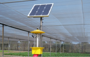 頻振式殺蟲燈是利用害蟲趨光性進行誘殺的一種物理防治方法。利用害蟲較強的趨光、趨波、趨色、趨性信息的特性,將光的波長、波段、波的頻率設定在特定范圍內,近距離用光、遠距離用波,加以誘到的害蟲本身產生的性信息引誘成蟲撲燈,燈外配以頻振式高壓電網觸殺,使害蟲落入燈下的接蟲袋內,達到殺滅害蟲的目的。廣泛應用于農業、林業、蔬菜、倉儲、茶葉、煙草、園林、大棚、葡萄園、水產養殖等方面。